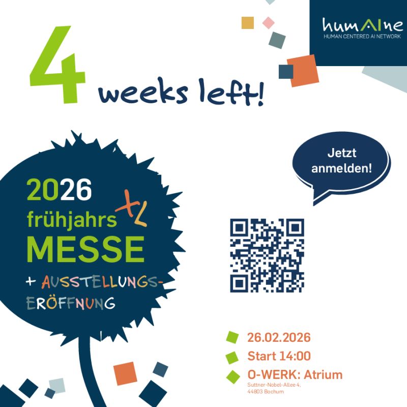Die 5. HUMAINE-Frühjahrsmesse präsentiert neueste Ergebnisse aus Forschung, Praxis und Vernetzung. Die Messe ist durch den HUMAINE Network e.V. verstetigt. Highlight im Jahr 2026 ist die Eröffnung der Ausstellungsroute „Zukunft. ARBEIT IM POTT“. Die Route führt quer durch das Ruhrgebiet rund um die Themen Arbeitswelt, KI und Humanzentrierung.